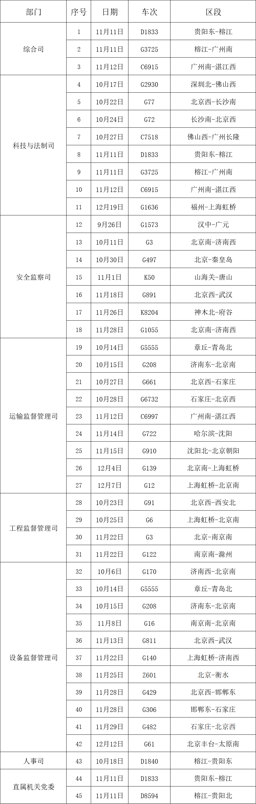 2024年四季度国家铁路局机关部门负责人添乘情况