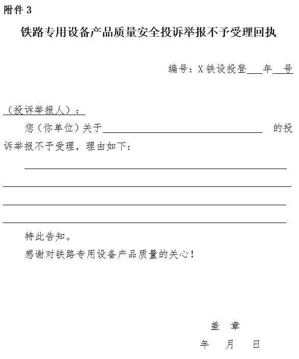 3.铁路专用设备产品质量安全投诉举报不予受理回执