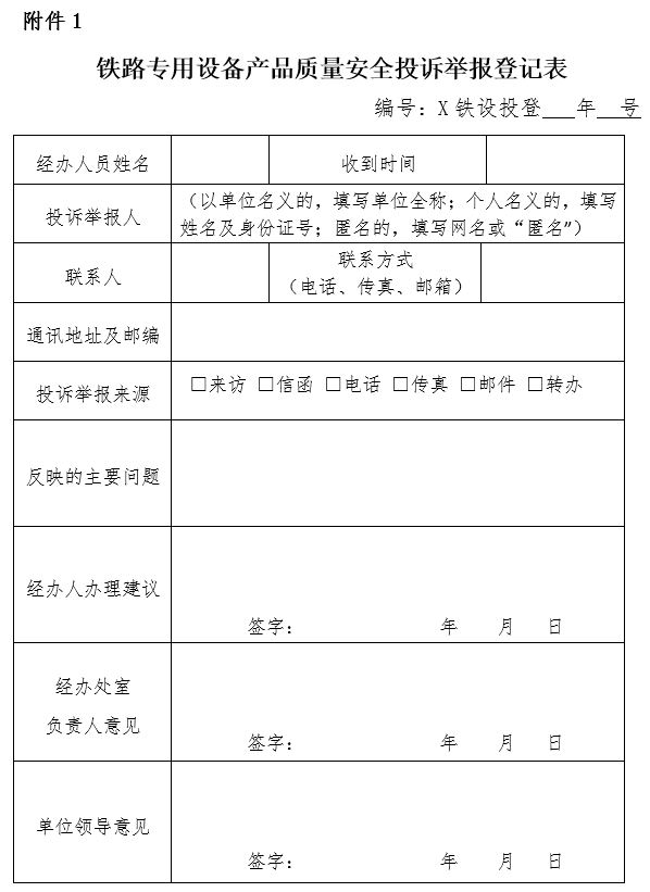 附件:1.铁路专用设备产品质量安全投诉举报登记表