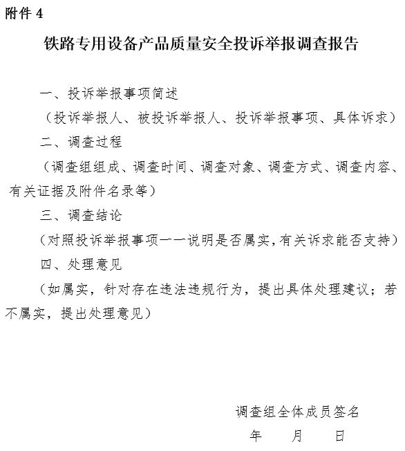 4.铁路专用设备产品质量安全投诉举报调查报告