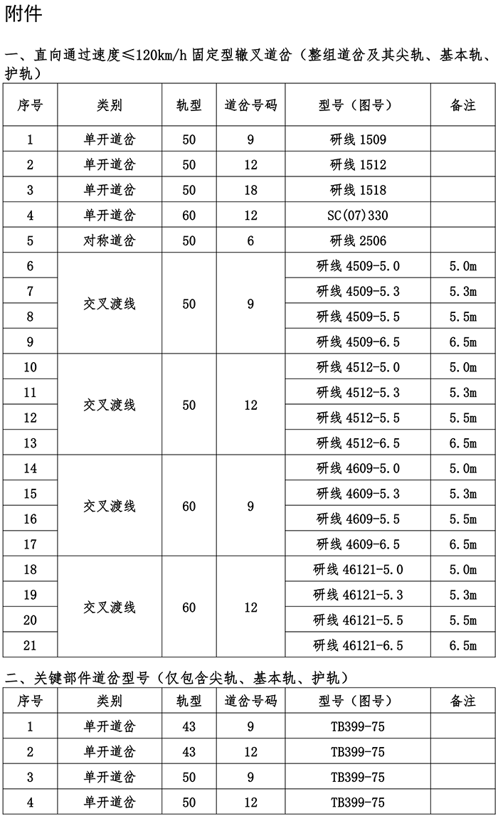 准予你单位生产直向通过速度≤120km/h固定型辙叉道岔(具体型号见附件),并颁发铁路运输基础设备生产企业许可证,证书编号为TXJC2025-10031,有效期至2030年6月11日。