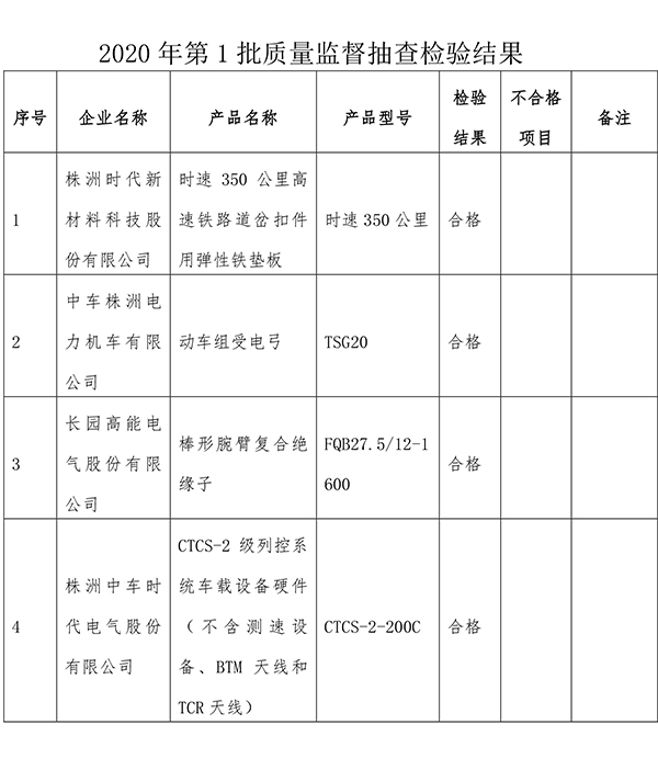 广州铁路监督管理局关于监督抽查铁路专用产品质量情况的通报(2020年第1批)
