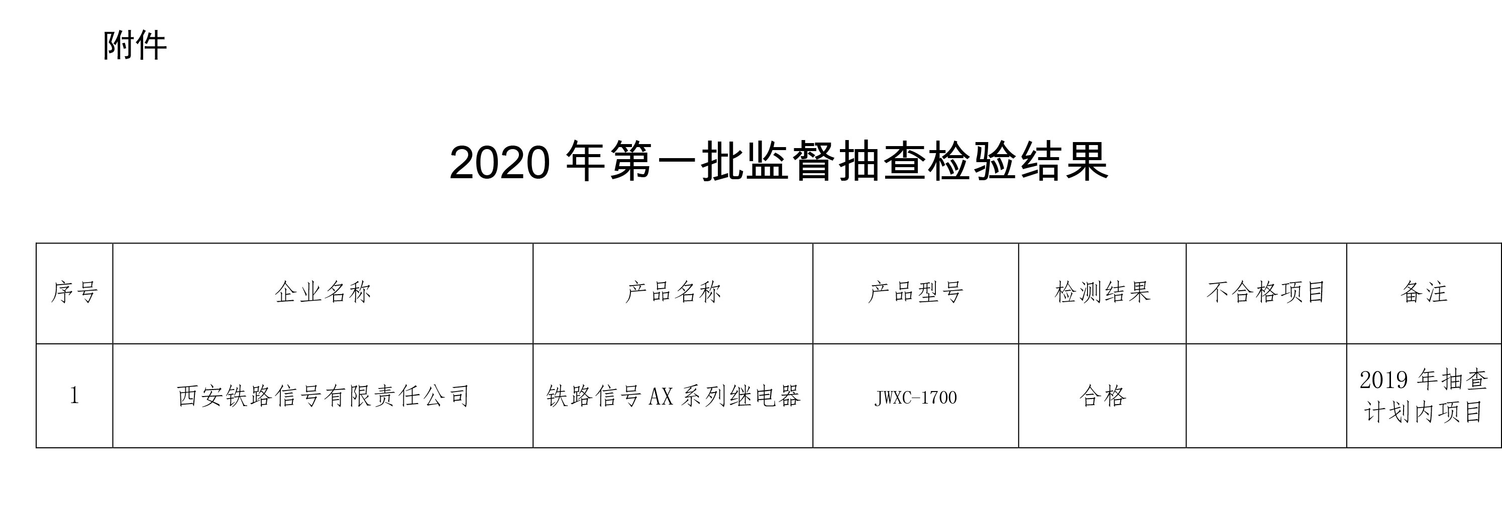 西安铁路监督管理局关于监督抽查铁路专用产品质量情况的通报(2020年第1批)