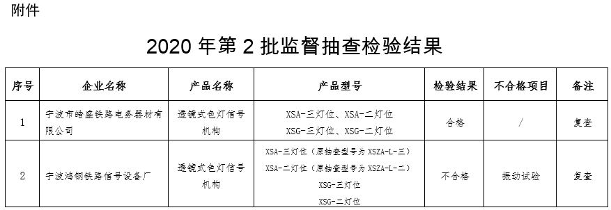宁波鸿钢铁路信号设备厂生产的透镜式色灯信号机构不合格,不合格原因为振动试验。