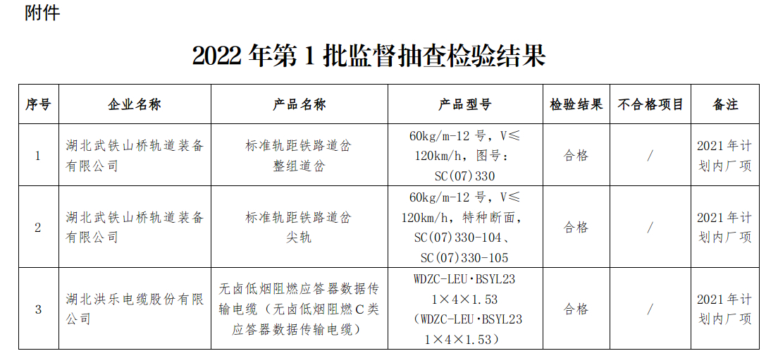 根据《铁路专用产品质量监督抽查管理办法》(国铁设备监规〔2020〕63号),现将2022年第1批铁路专用产品质量监督抽查情况通报如下。