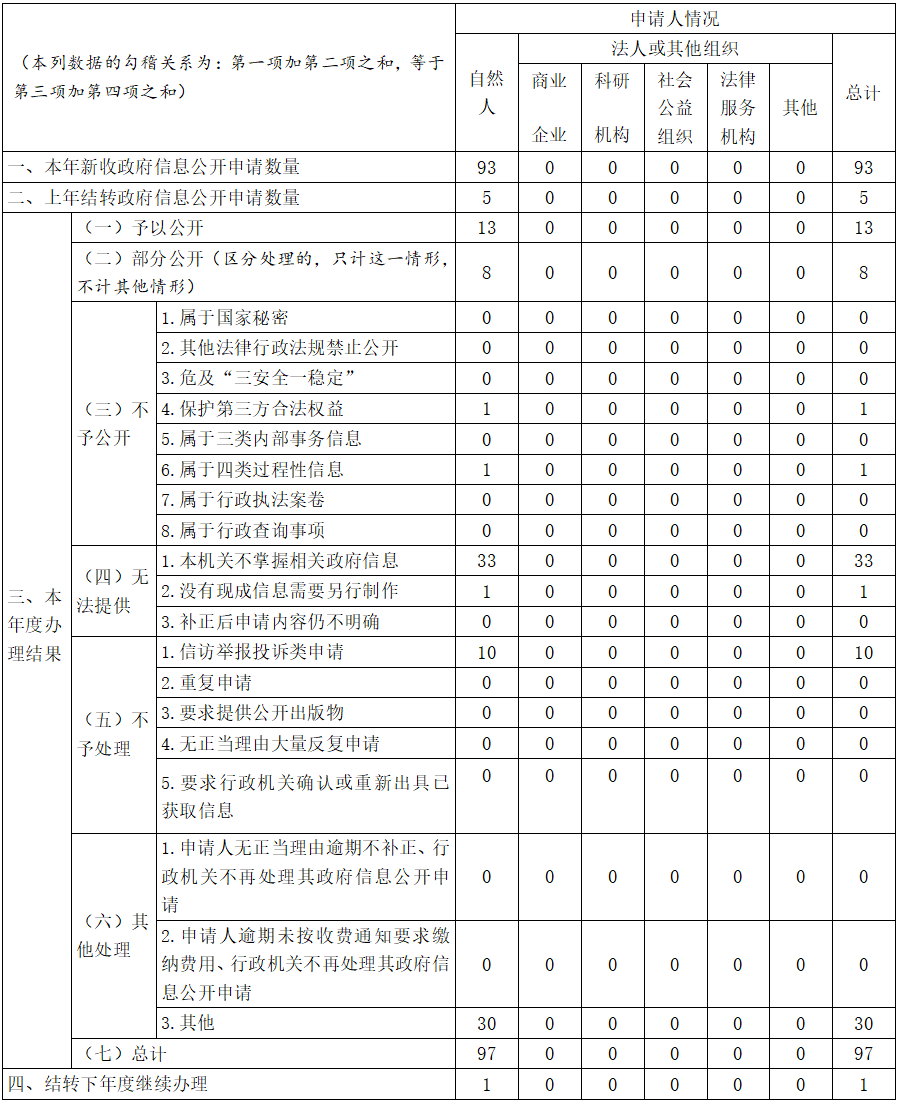 严格按照《条例》要求开展依申请公开工作,优化办理流程,加强主动沟通,提高答复时效。全年,共受理各类政府信息公开申请98件,结转1件下年度办理,其余均已办结。申请事项主要集中在铁路运输服务监管、规划建设、行业标准、统计数据等方面。