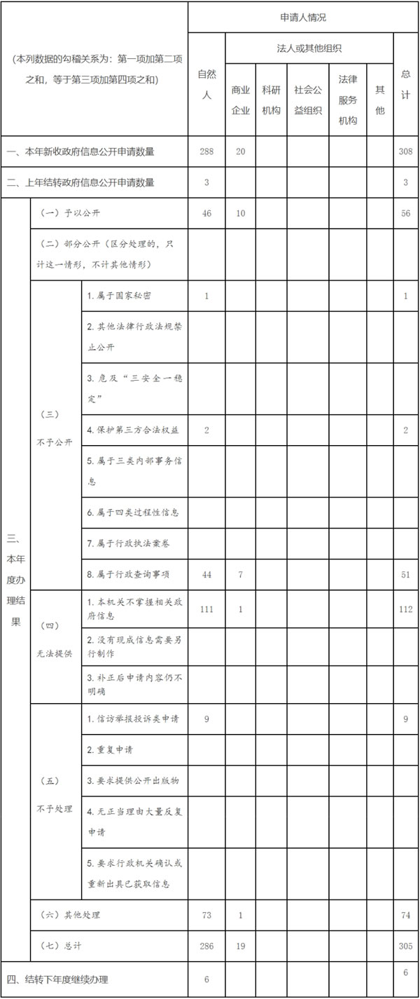 三、收到和处理政府信息公开申请情况