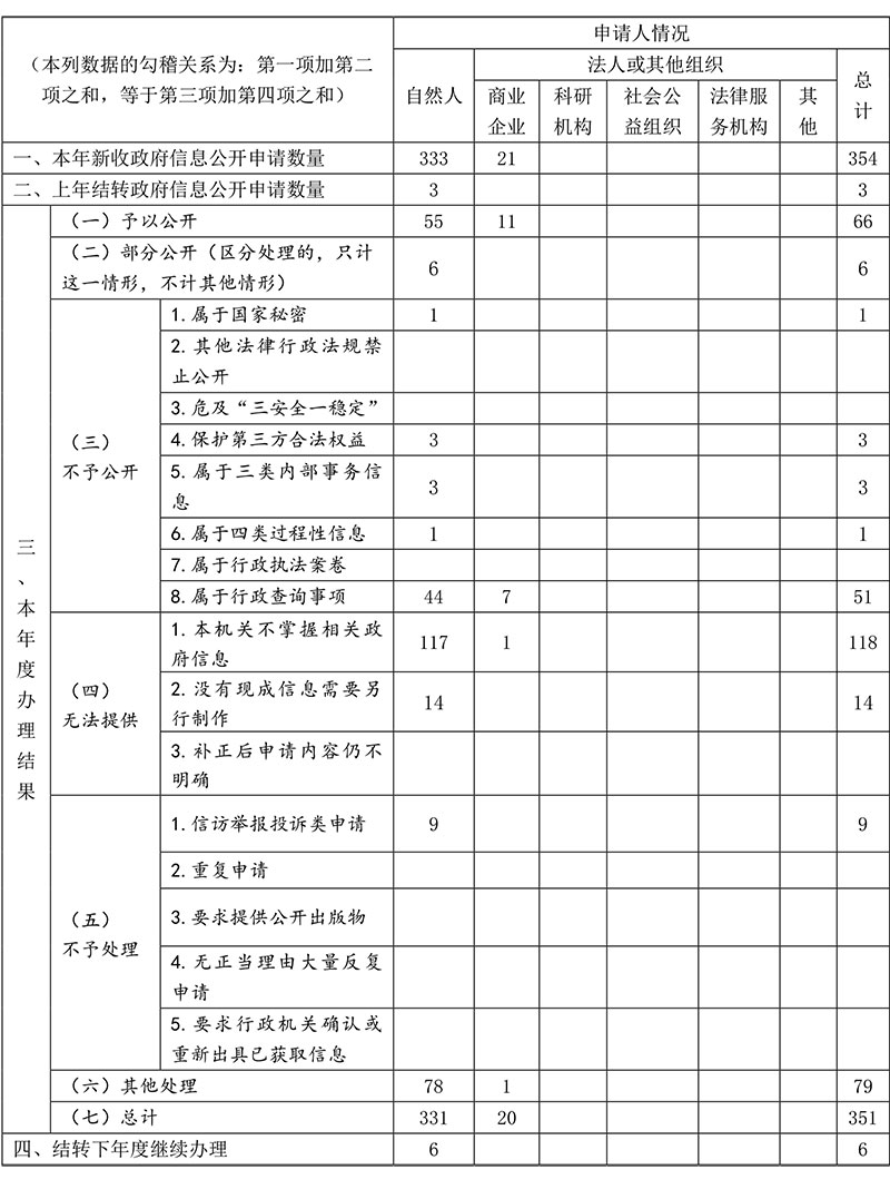 三、收到和处理政府信息公开申请情况