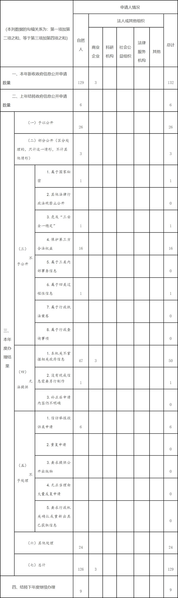 三、收到和处理政府信息公开申请情况