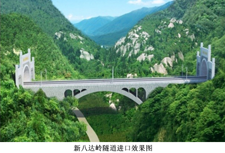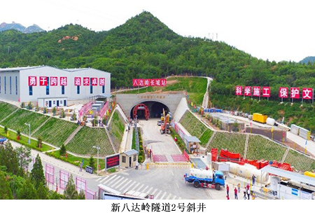 京张铁路新八达岭隧道全长12.01km,是全线最长隧道。隧道位于北京市昌平区南口镇至延庆县区段,一次并行水关长城,两次下穿八达岭长城,一处浅埋下穿老京张铁路青龙桥车站。隧道洞身最小埋深4m,最大埋深432m;所在区段最高设计时速为250km/h,是单洞双线隧道;隧道设计有两个斜井进行辅助施工,均为永久性救援通道。2016年4月开工建设,计划2019年12月建成通车。
