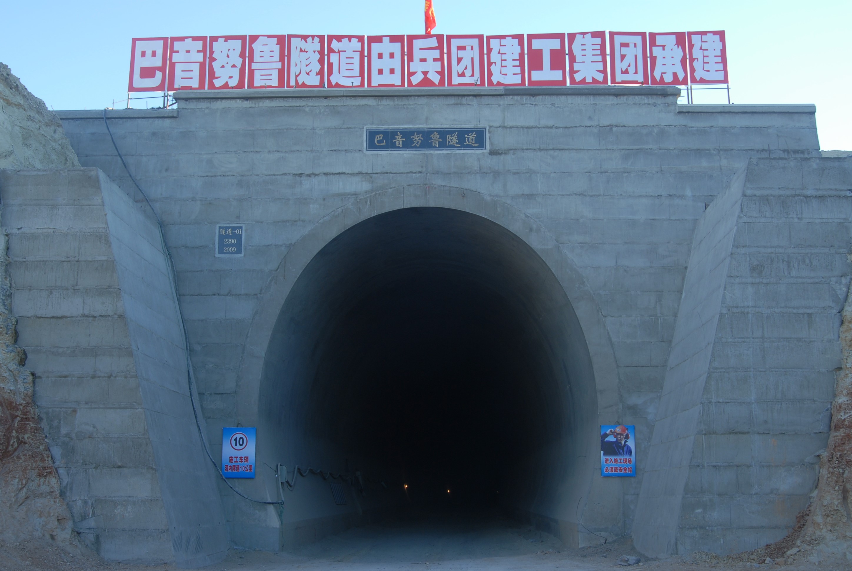 ?。?)巴音努鲁隧道。全长2390米,为Ⅴ级围岩浅埋,通过中等膨胀性泥岩地段。2007年9月开工, 2009年6月主体完工。
