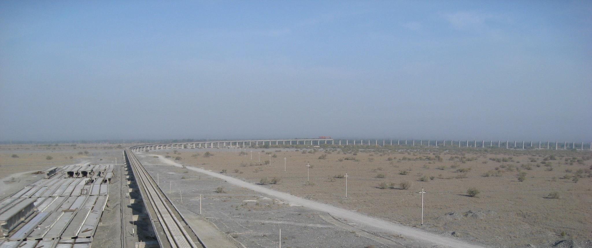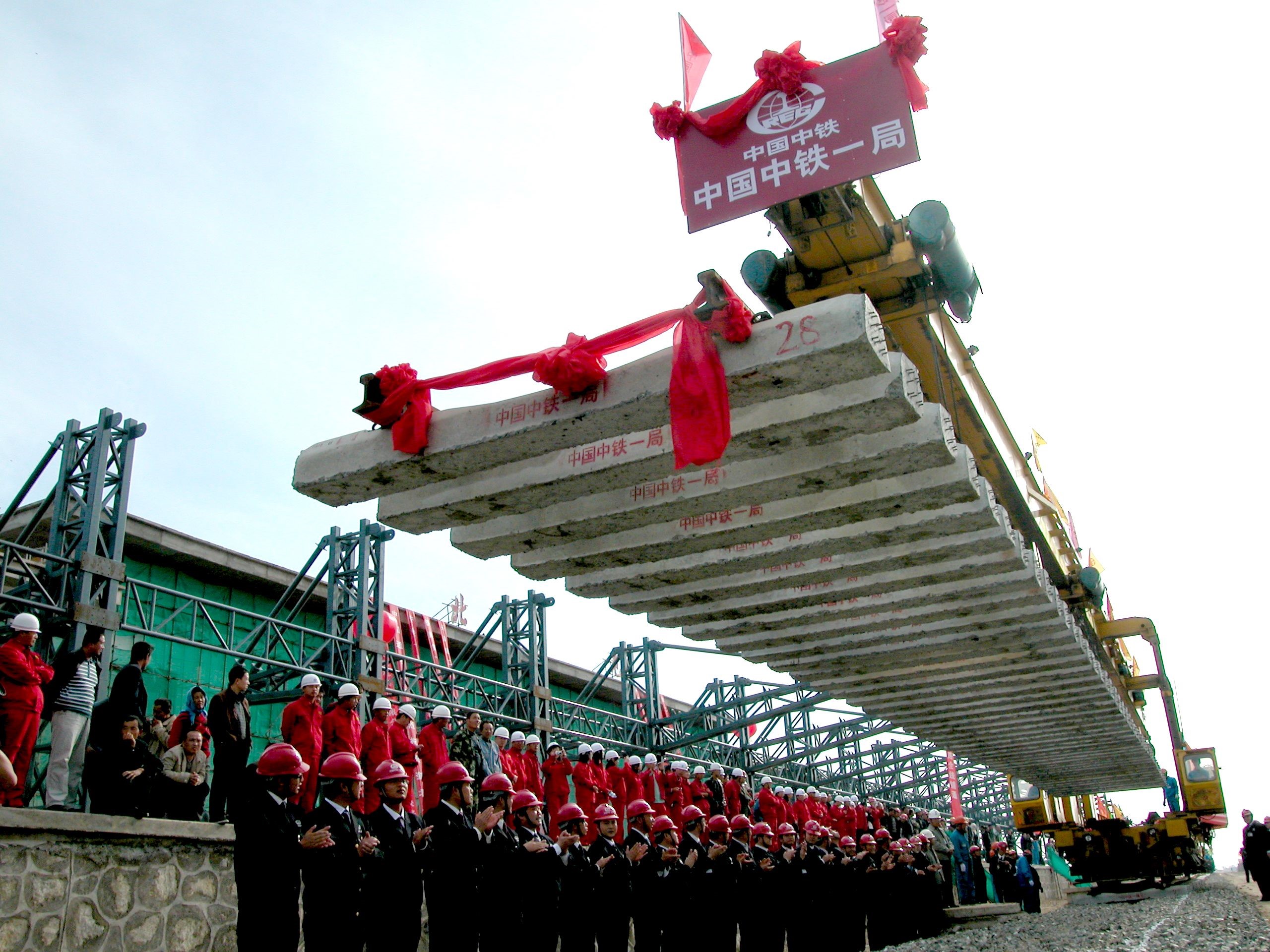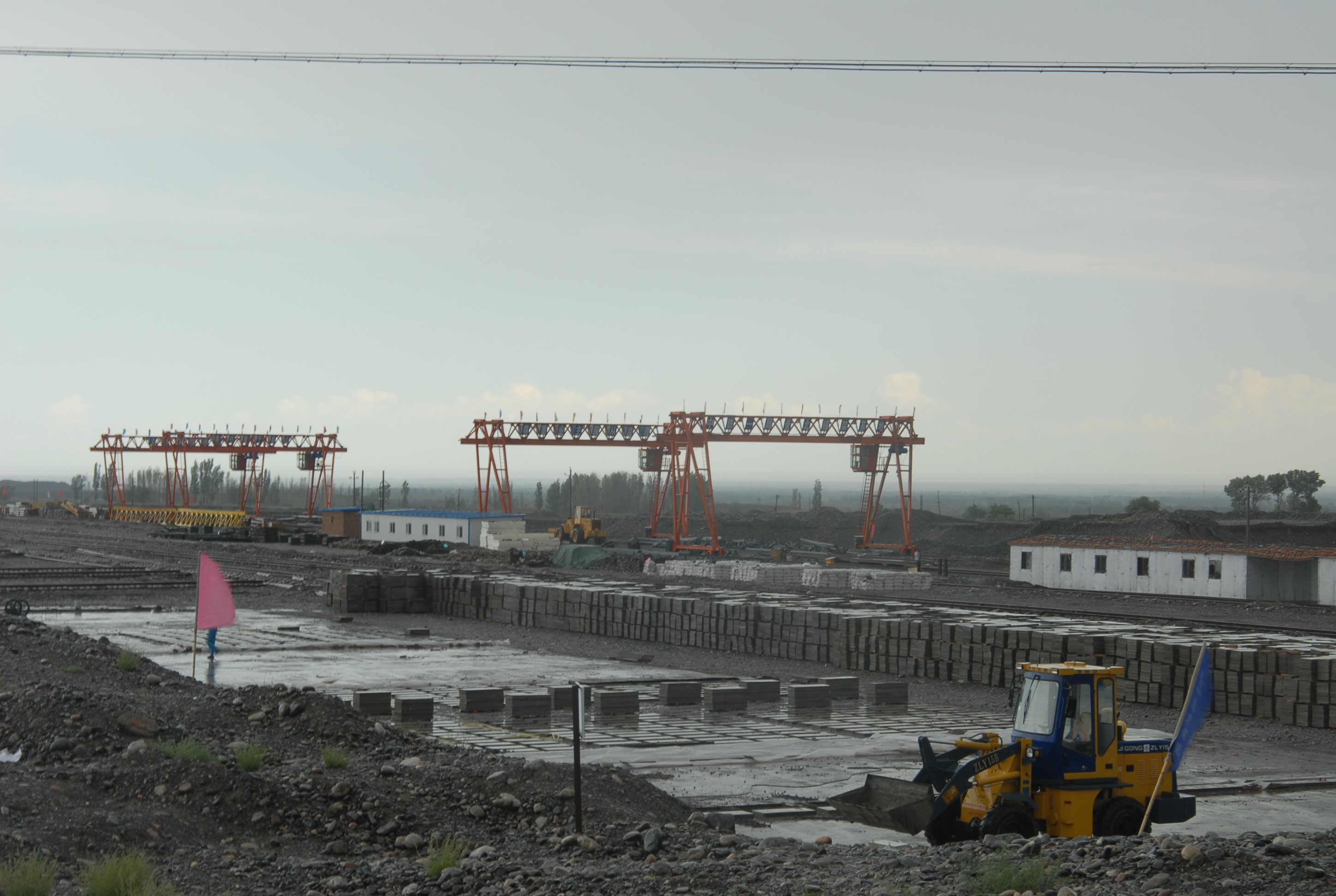 ?。?)奎屯河特大桥。全长6859.16米,为209孔32米预应力混凝土桥梁,最高桥墩31.5米,是新疆境内规模最大的铁路桥梁,2007年4月开工,2008年9月主体完工。