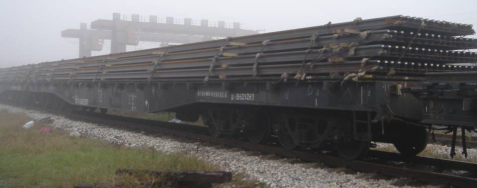 D22型载重120吨长大平车装运25吨长钢轨