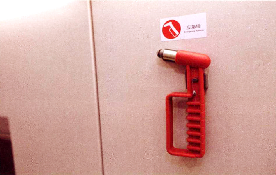 应急锤是在发生紧急情况时,列车紧急制动停车后,用于敲碎车窗玻璃自救逃生的工具;灭火器用于扑灭火灾。灭火器、应急锤关乎旅客生命。一是不能拿走或挪动位置,影响发生紧急情况时旅客自救和逃生;二是在正常情况下不许使用这些设备,以免造成严重后果。