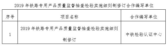 国家铁路局装备技术中心2019年铁路专用产品质量监督抽查检验实施细则制修订合作编写单位选择方案公示